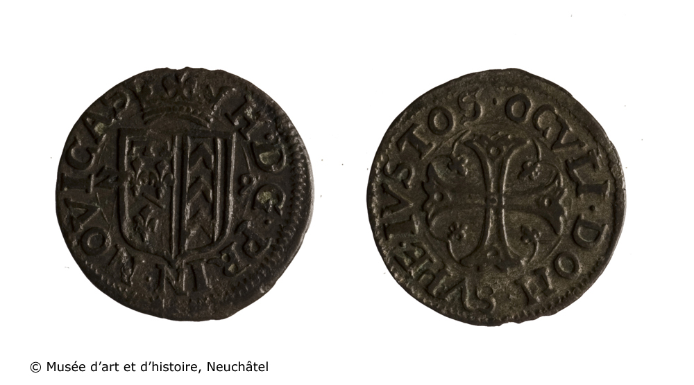 La famille des Orléans-Longueville est issue du comte Dunois, fils naturel de Louis d’Orléans qui est lui-même le deuxième fils du roi Charles V. Les Orléans-Longueville appartienne donc à la fois à une branche bâtarde et à une branche cadette de la famille royale. Cette double qualité affaiblit leur position à la cour de France. La souveraineté sur Neuchâtel en revanche améliore leur place à la cour. Parmi les marques visibles de cette souveraineté figurent le droit de battre monnaie, le blason et la titulature des monnaies. Henri II (1595-1663) va progressivement tenter de diminuer l’importance de sa bâtardise tout en affirmant sa souveraineté par le changement de son titre de comte en prince.