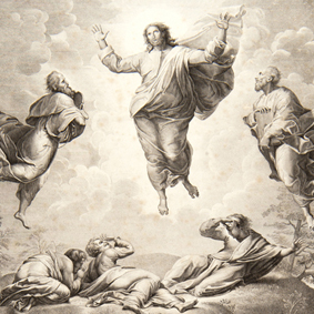 Le sujet de ces deux œuvres représente la transfiguration de Jésus, apparaissant à ses disciples dans une clarté miraculeuse sur le Mont Thabor. Cet événement leur révèle sa nature de messie envoyé par Dieu, et prélude sa venue à Jérusalem. La Transfiguration de Raphaël est un chef-d’œuvre universel. L’épisode, raconté dans les Évangiles (Matthieu 17, v. 1-9 ; Marc 9, v. 2-10 ; Luc 9, v. 28-36), est représenté dans un double moment : la Transfiguration de Jésus et la guérison d’un jeune malade. Ces deux épisodes se déroulent à la suite l’un de l’autre, mais sont ici figurés sur un même espace.